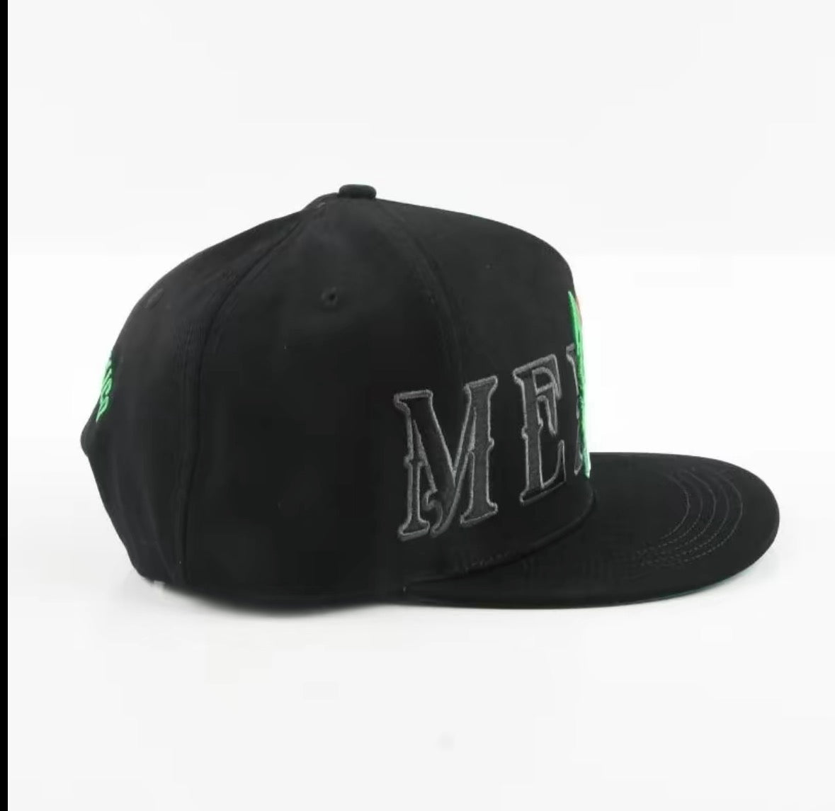 Elevate your style with this black snapback hat featuring bold MEXICO embroidery and a striking tricolor design inspired by the Mexican flag. Made with high-quality materials for a comfortable fit and long-lasting wear. Perfect for everyday outfits, streetwear looks, or showing pride at events and celebrations. Adjustable snapback closure fits most head sizes.